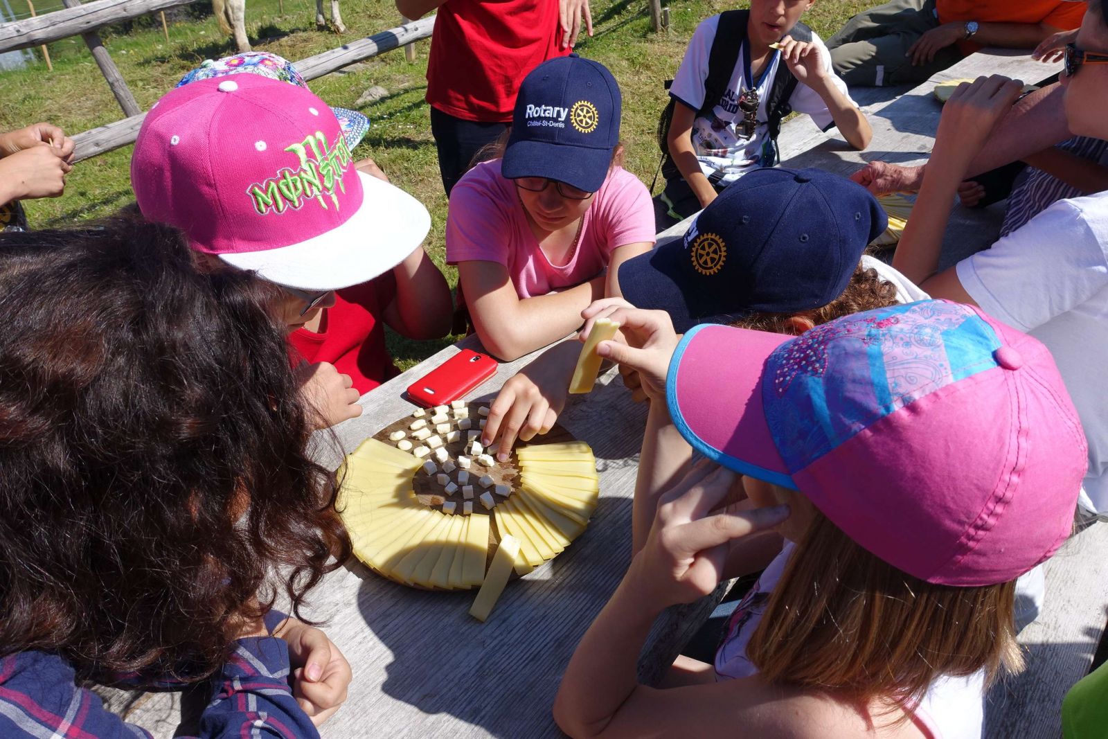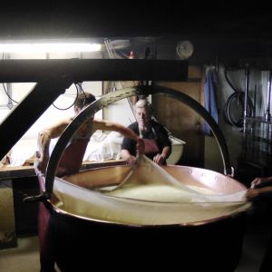 По канатной дороге мы поднялись на высокую гору Вунетс на 1600 метров над уровнем моря и посетили сыроварню. Было удивительно, что из 1000 литров молока можно изготовить всего три головки сыра. Посочувствовали работникам сыроварни, как это они могут выдерживать такую высокую температуру! В маленьком жарком помещении горит огонь, температура сыворотки 56 градусов. Долго мы не смогли там продержаться и бегом выскочили на улицу. Тридцатиградусная жара на свежем воздухе показалась нам прохладой.